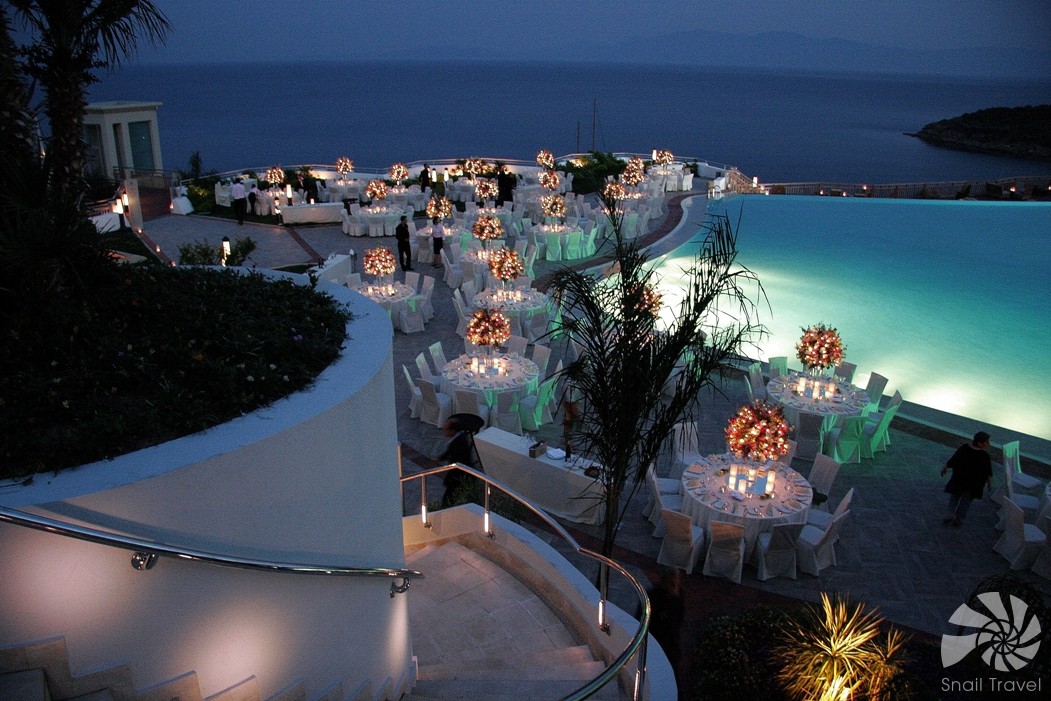 Tento luxusní hotel je situován v klidném zálivu Barbaros, cca 14 km od centra města Bodruam a 38 km od mezinárodního letiště Bodrum Milas.